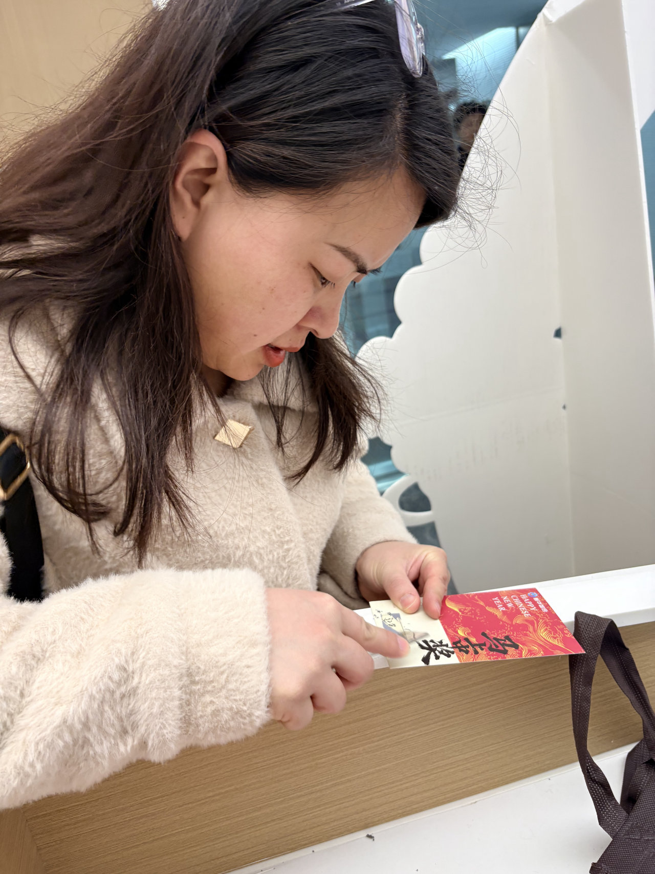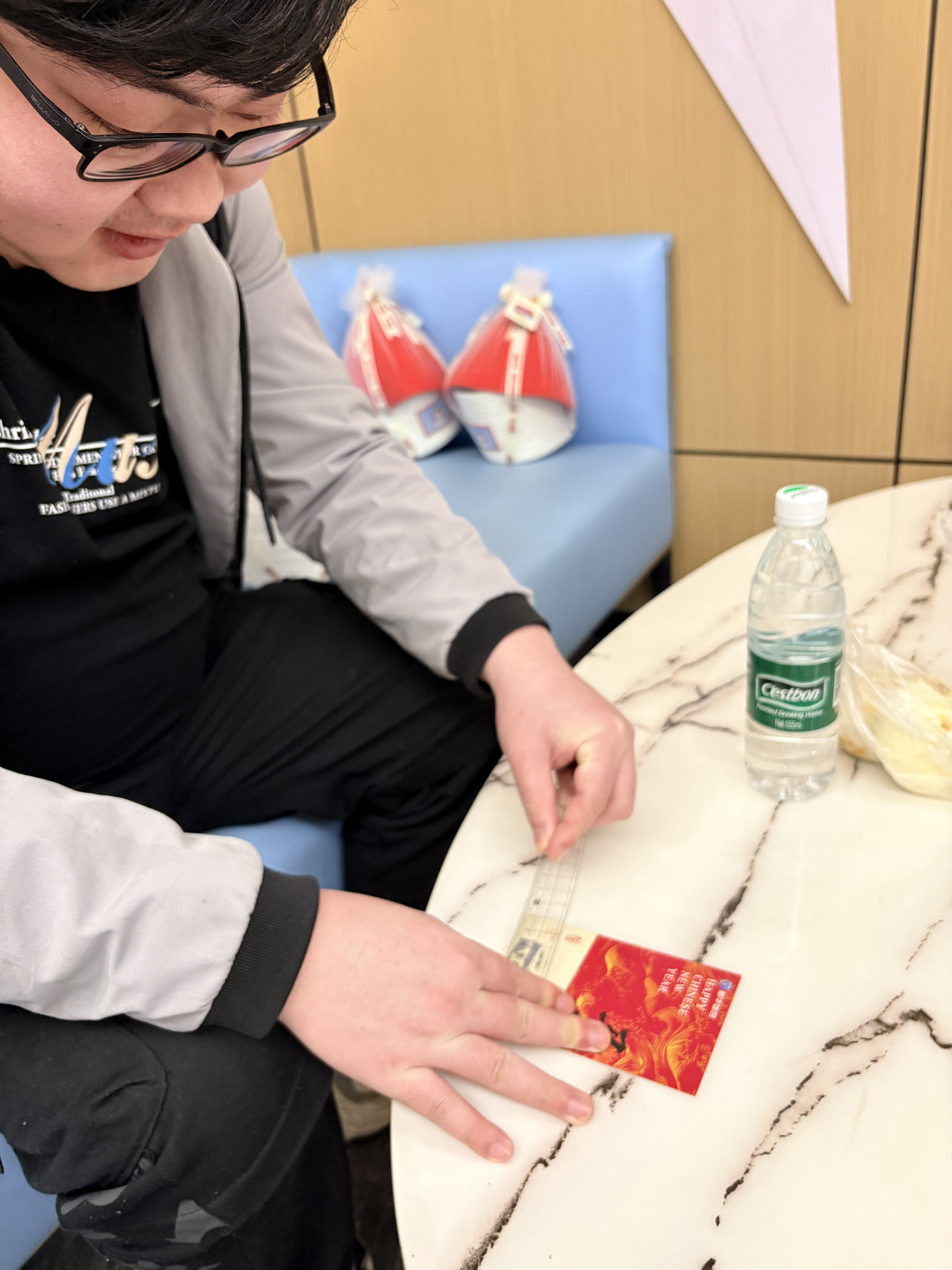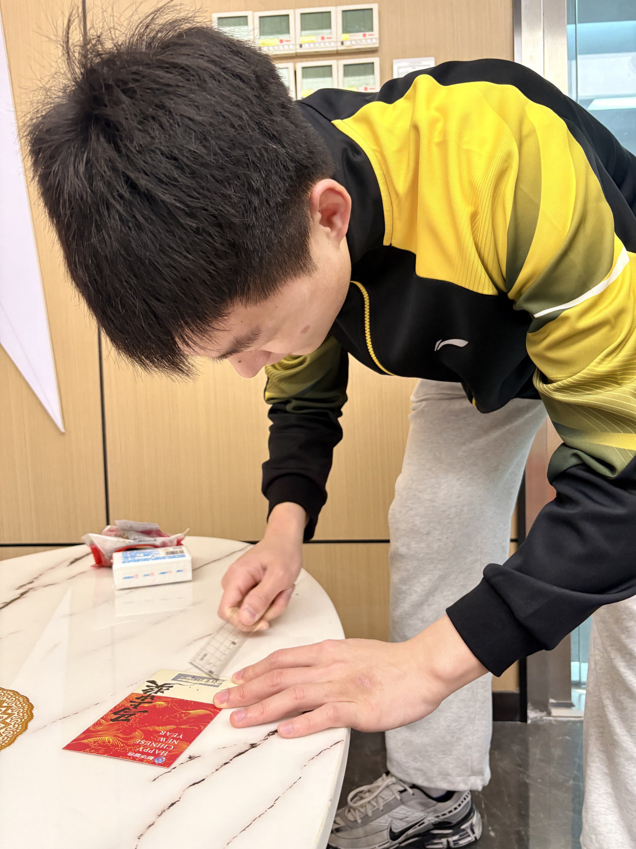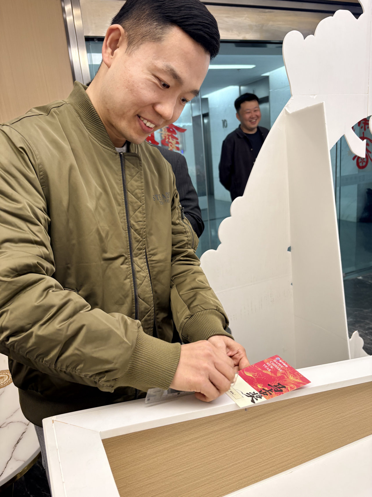 早晨八点半,公司前厅已是一片红火景象。“2026一定很哇塞”的主题背景板格外醒目,今年公司别出心裁,将传统红包升级为刮奖抽红包。每一位到岗的员工都满怀期待地走上前,拿起直尺,轻轻刮开涂层。